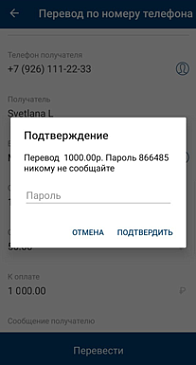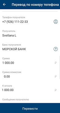 Для осуществления перевода необходимо указать только номер телефона получателя